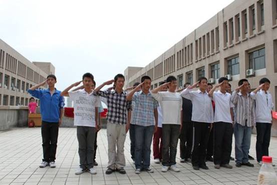 55下午,为纪念五四运动91周年,万象城官网在教学6号楼三层平台举行青春的盛会五四主题团日活动。院党委王强书记、康连科副书记,院团委安辉书记等出席了活动。