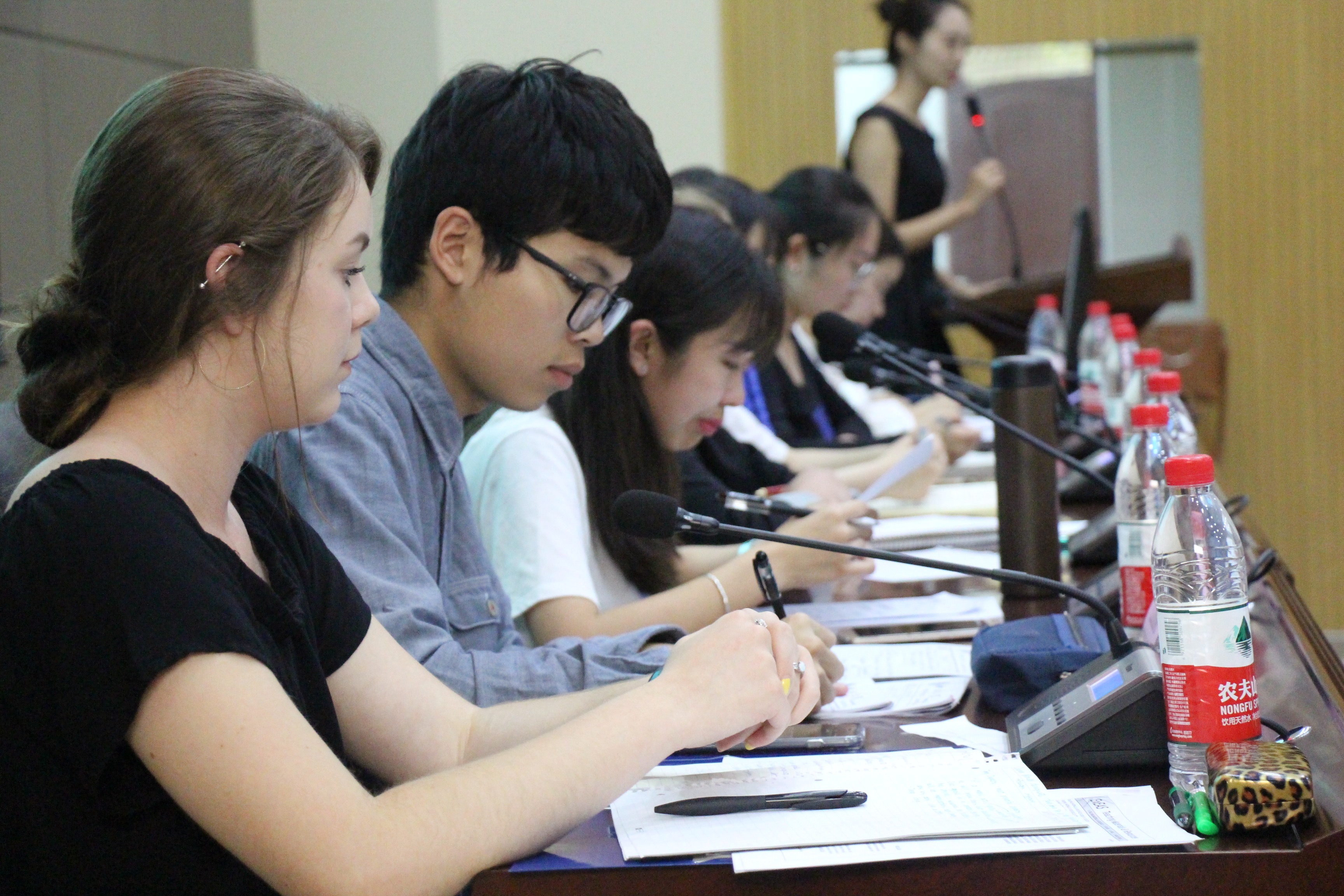 下午2:30,辩论赛正式开始。本次辩论赛分为两组,以“唐僧应该被任命为外交部长”“钢铁侠应该代替特朗普当选总统”为论题,采用英国议会制赛制,中美辩手两两组成四支辩论队伍,展开了激烈的辩论。