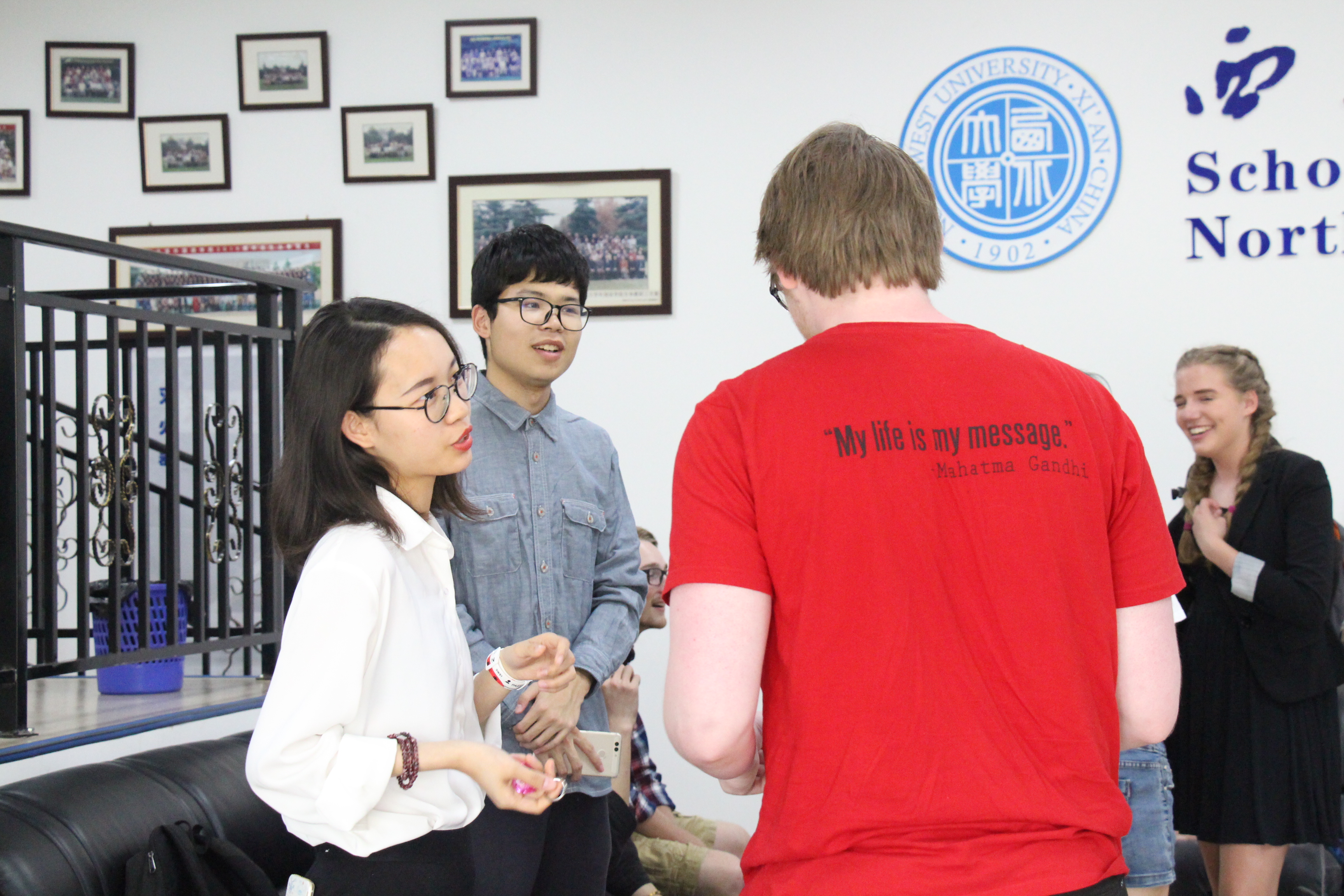 在比赛正式开始前,来自美国西北拿撒勒大学孔子学院的同学们与万象城官网同学展开了友好的交谈,现场氛围十分热烈。