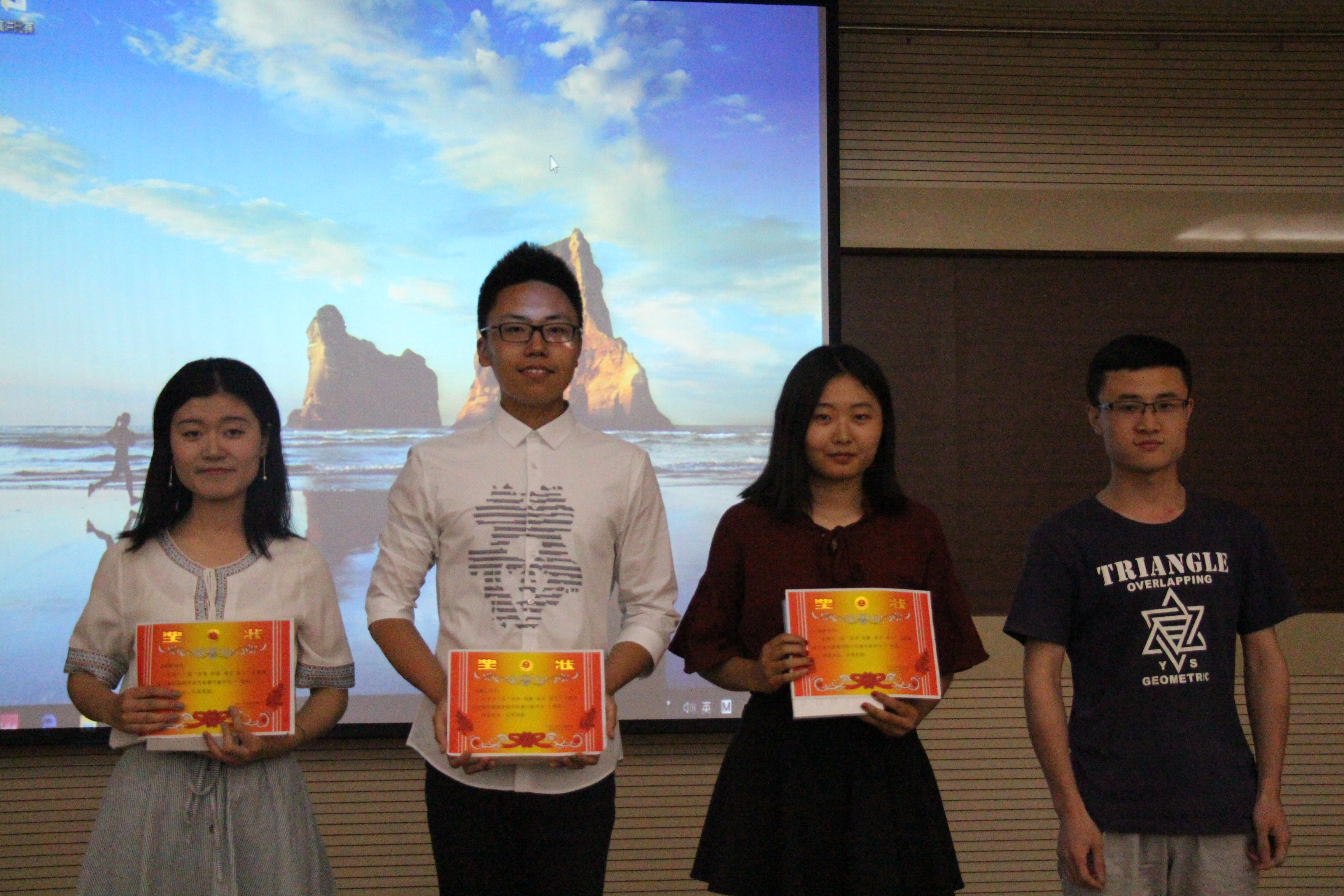 最后,祝贺以下同学获得优异的成绩:一等奖:方博文,二等奖:连聪颖,三等奖:卞靖怡。