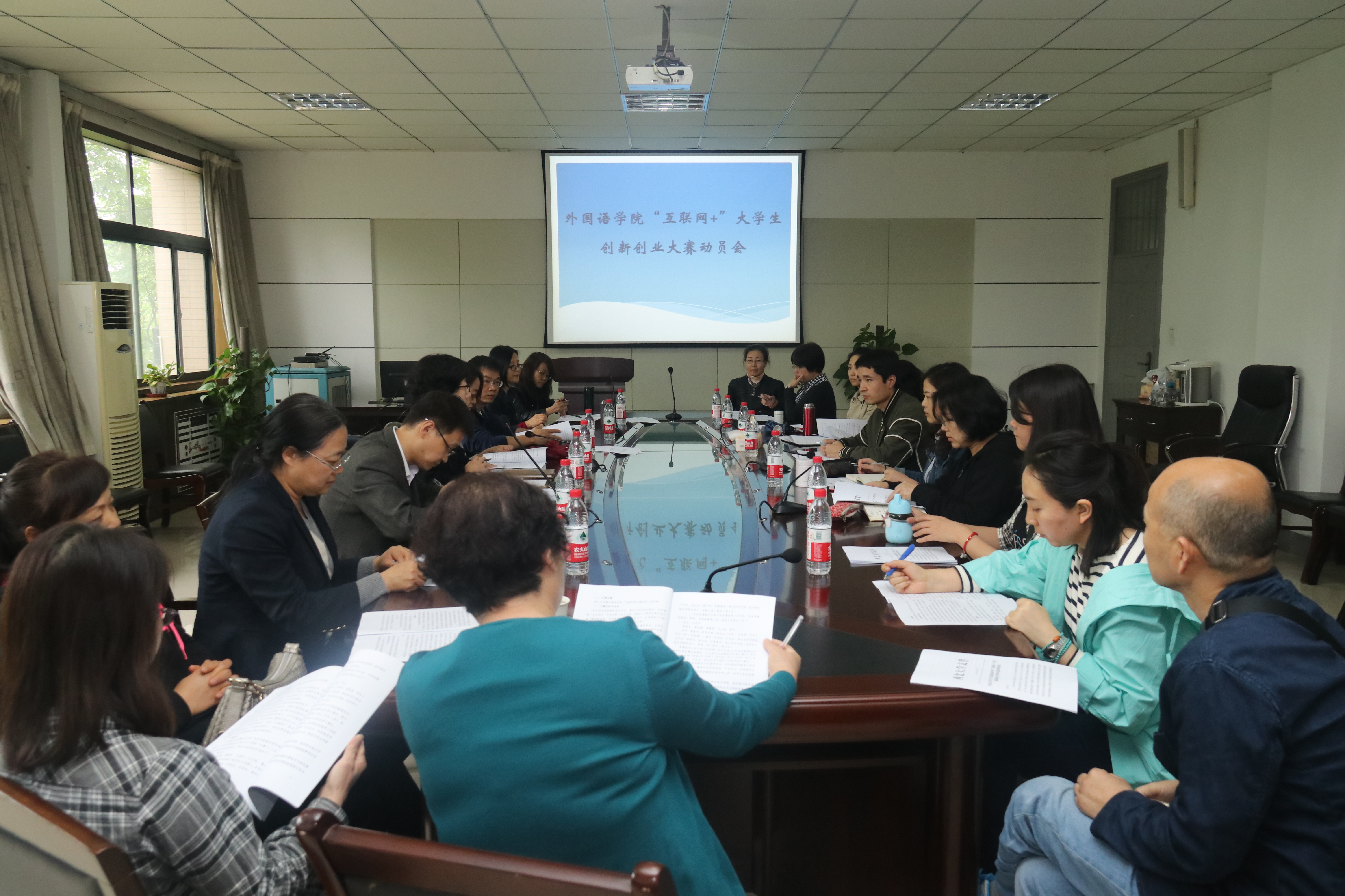2018年4月25日下午2点半,万象城官网在6315会议室召开了“互联网+”大学生创新创业大赛动员会。参加动员会的有党委副书记徐自成、教学副院长曹若男、英语系主任苏蕊、日语系主任张子如及各班班主任。