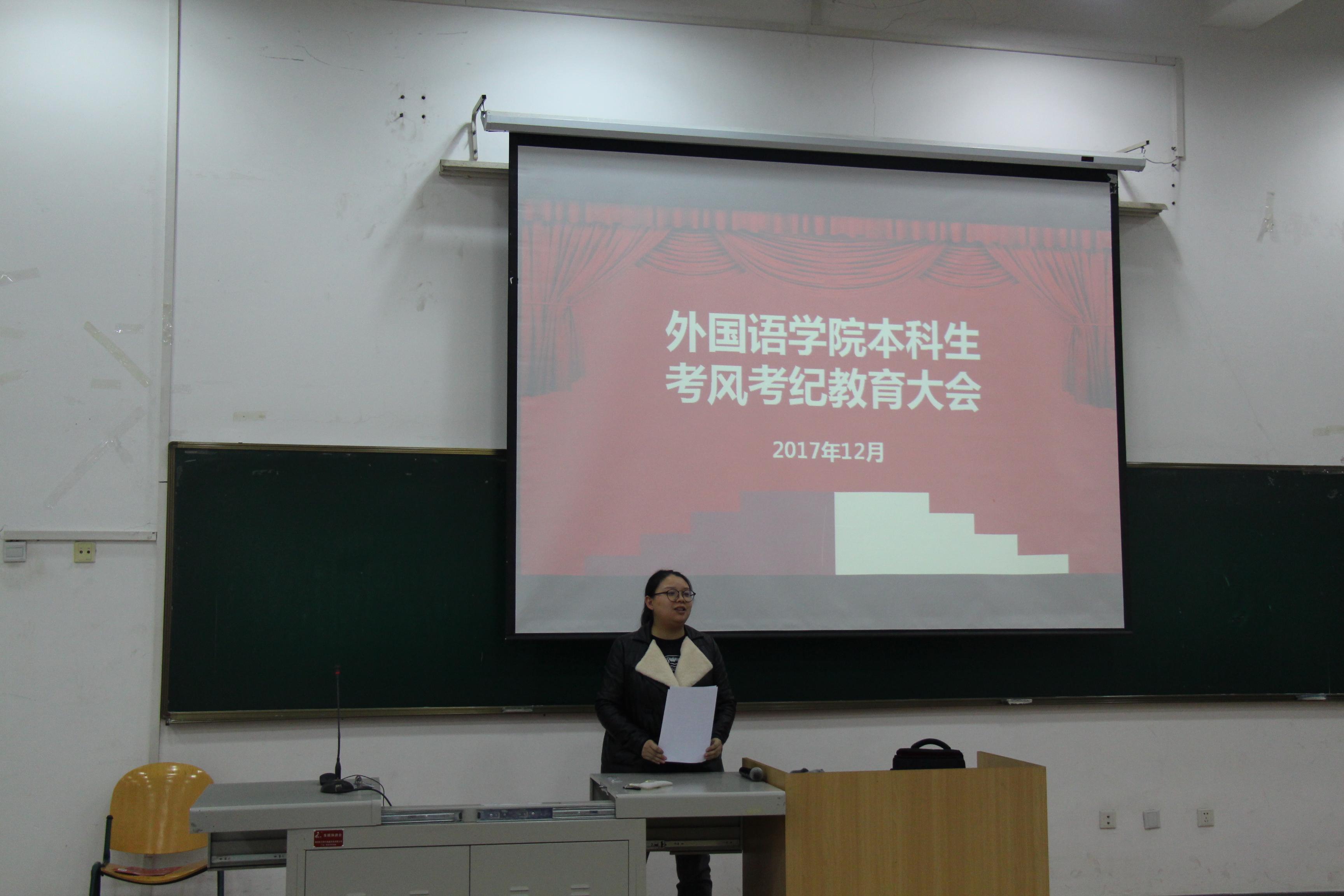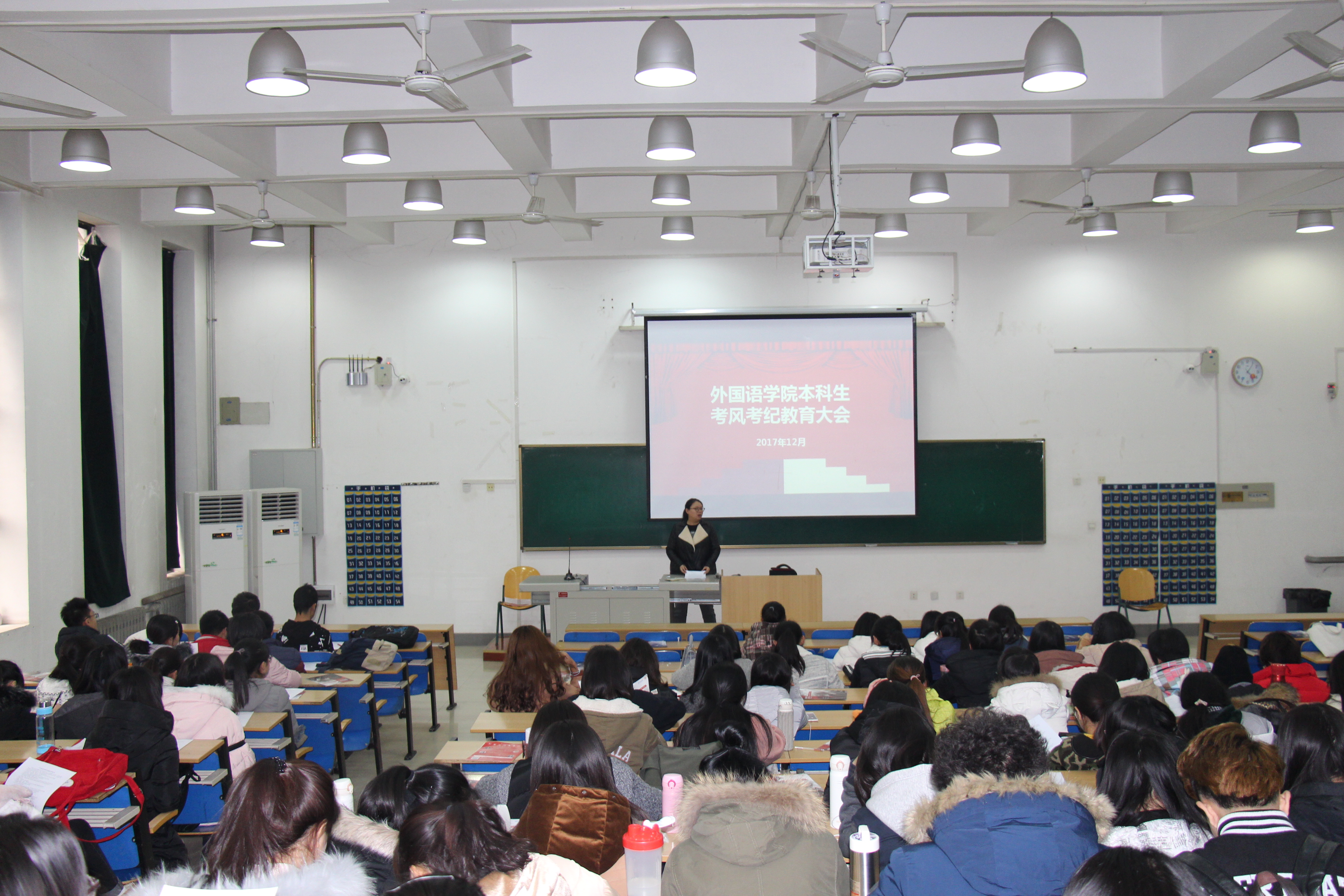 2017年12月初,在期末考试即将到来之际,为进一步严肃考风考纪,在广大学生中提倡敬廉崇洁的良好风气,营造诚信考试的良好氛围,保证期末考试的顺利进行,万象城官网本科生考风考纪教育大会在4J201教室召开,辅导员李媛老师主持本次会议。