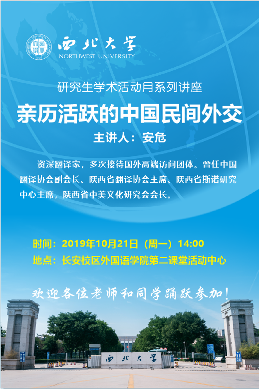 学院定于2019年10月21日(周一)下午14:00召开关于《亲历活跃的中国民间外交》报告,欢迎各位老师积极参加。