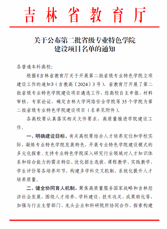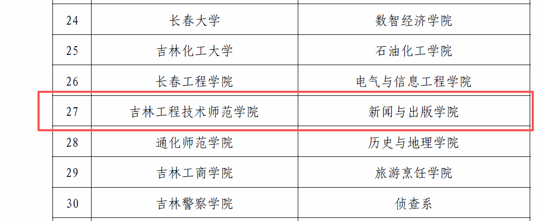 近日,吉林省教育厅公布了《关于公布第二批省级专业特色学院建设项目名单的通知》,经前期高校自主申报、材料审核、专家论证,学校新闻与出版学院成功入选。