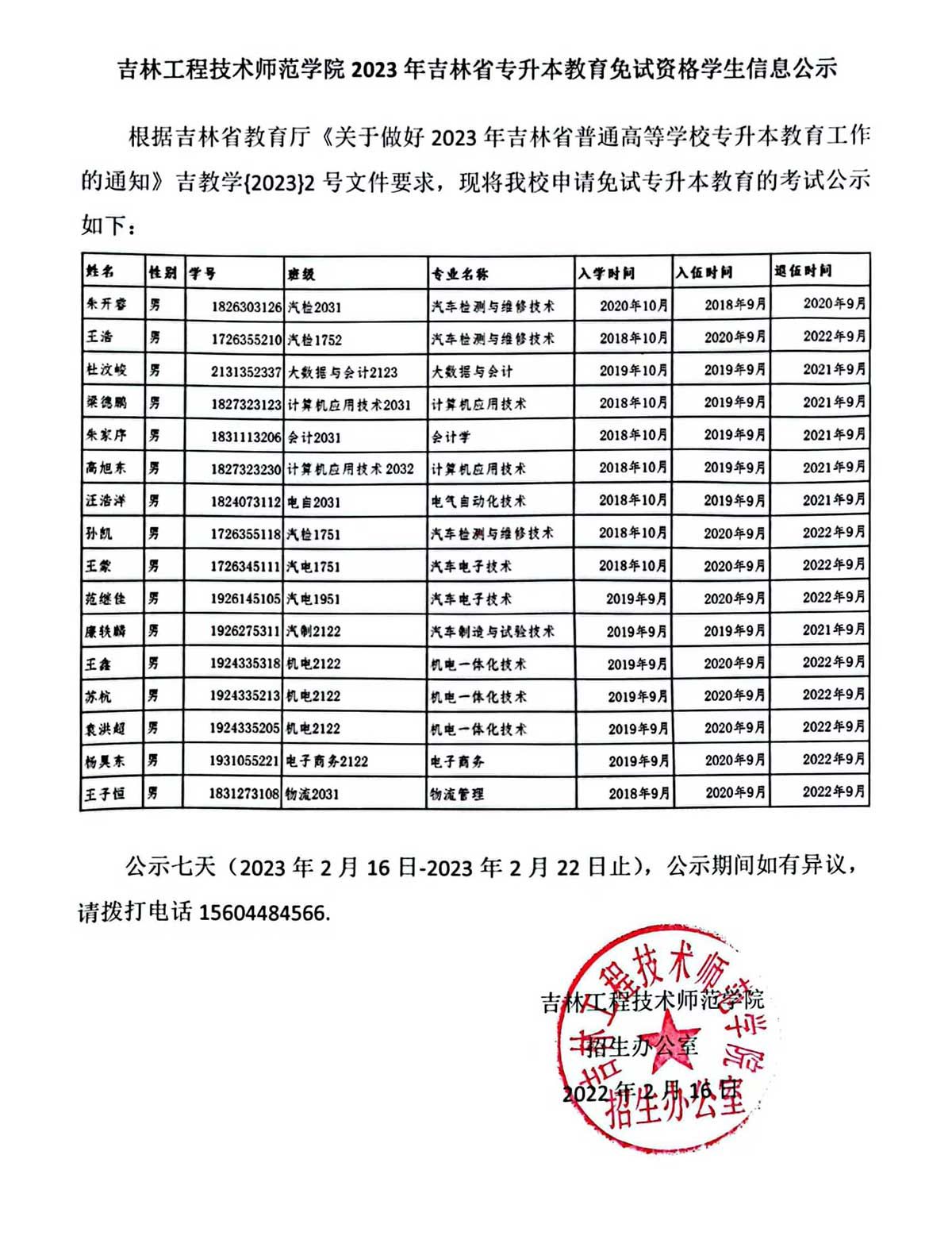 艾弗森贝博ballbet官网2023年吉林省专升本教育免试资格学生信息公示