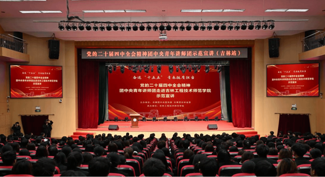 为深入学习宣传贯彻党的二十届四中全会精神,引导广大工师学子把思想和行动统一到党中央决策部署上来,日前,学校特邀共青团中央青年讲师团走进吉林工师,以“奋进‘十五五’ 青春挺膺担当”为题,举办党的二十届四中全会精神示范宣讲报告会。报告会旨在引导广大工师学子深刻领会全会核心要义,激励青年奋进“十五五”、建功新征程,为谱写中国式现代化建设的青春篇章汇聚磅礴力量。共青团吉林省委副书记马景惠、共青团中央宣传部理论传播处干部晋哲楠,...